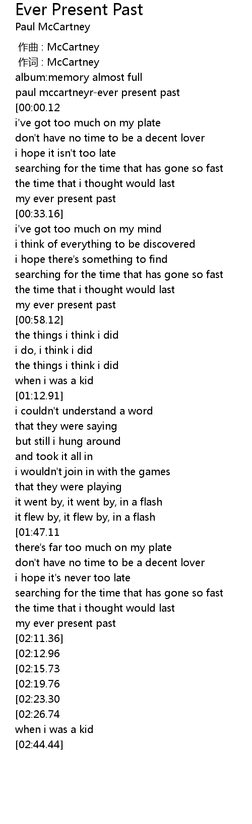 | [00:00.57] | paul mccartneyr-ever present past |