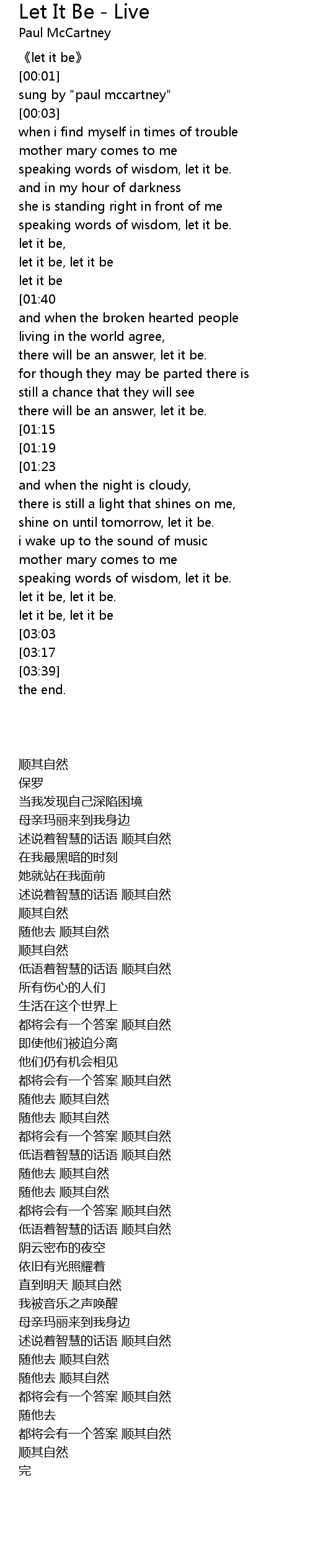 | [03:34][03:17] | let it be |