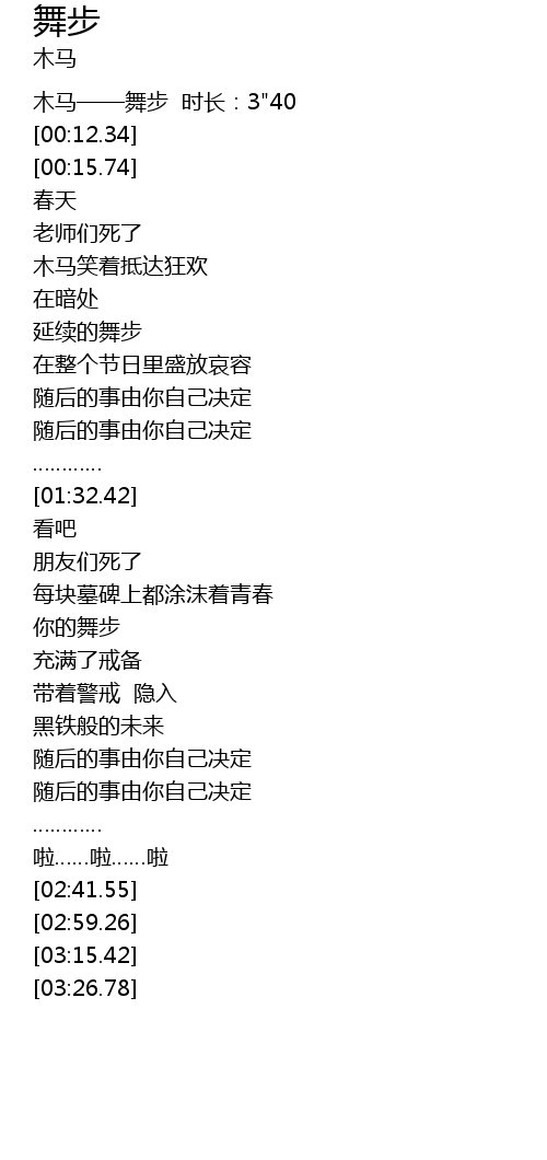 | [00:03.07] | 木马——舞步 时长:3"40 |