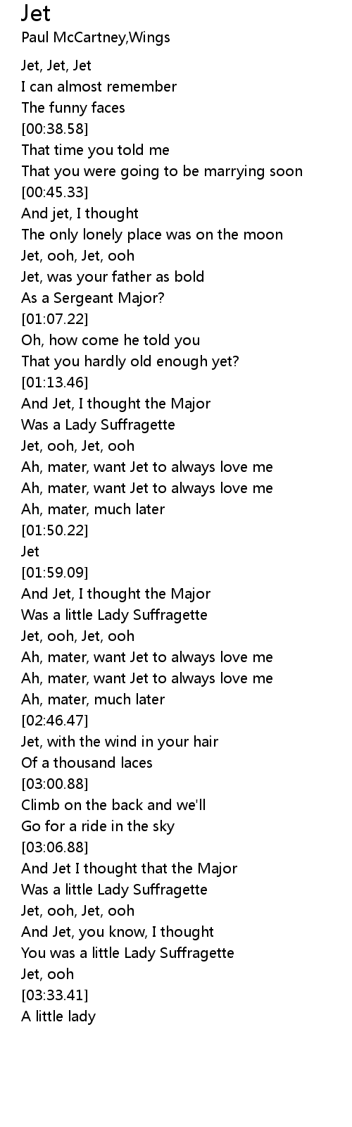 | [02:19.42] | Jet, ooh, Jet, ooh |