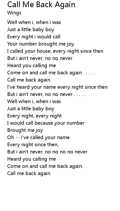| Come on and call me back again . . . . . | |