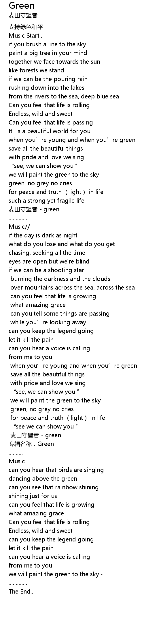 | [03:17.54] | zhuān jí míng chēng: Green |