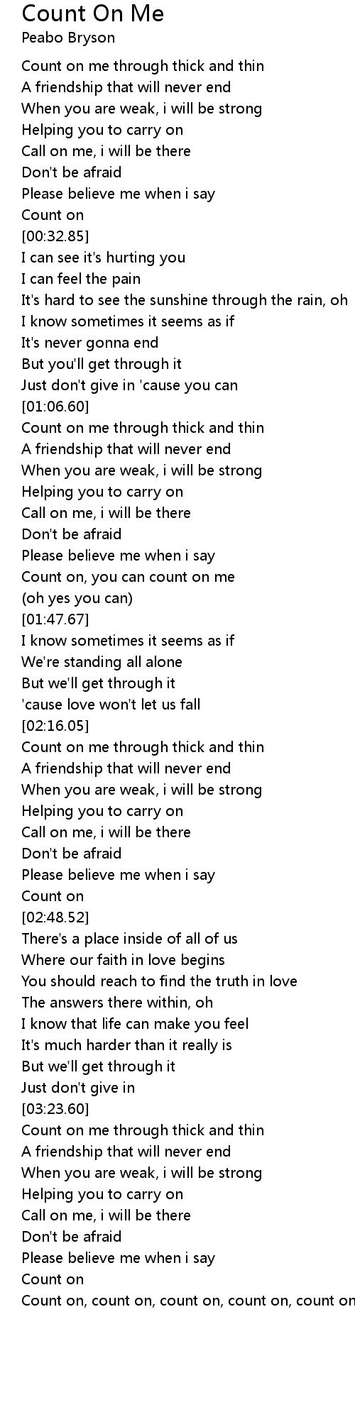 Count on, count on, count on, count on, count on, count on me |