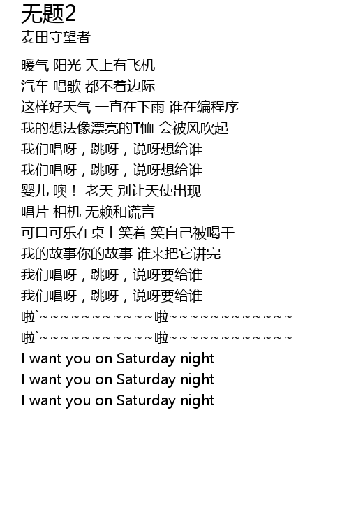 | [03:02.12] | I want you on Saturday night |