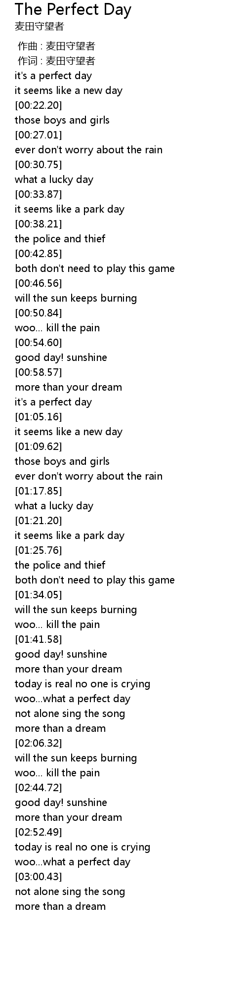 | [01:03.10] | it's a perfect day |