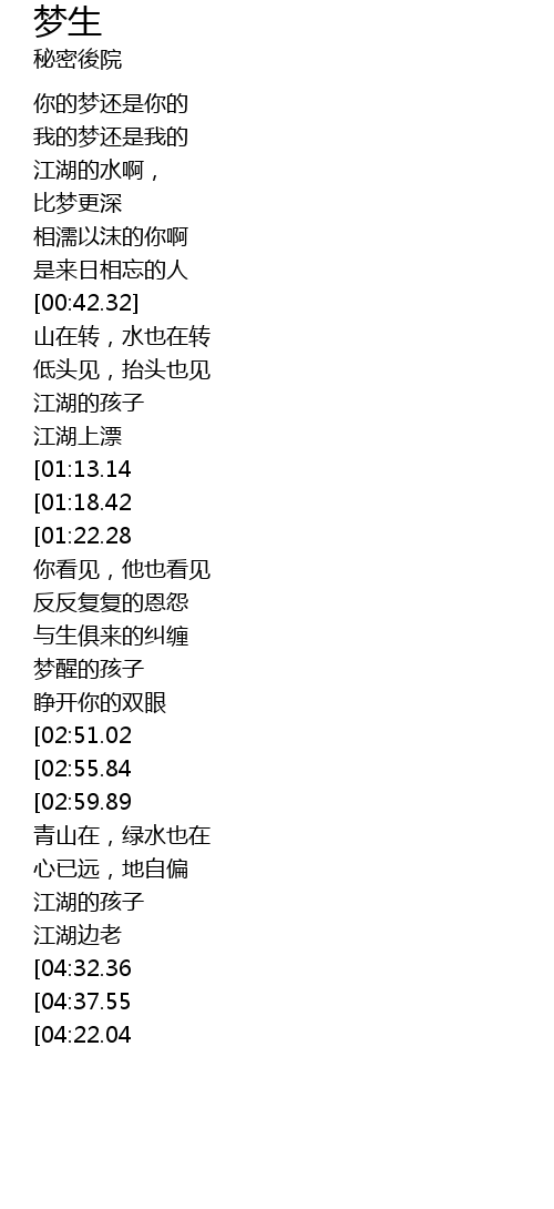 | [04:42.37][04:32.36][04:12.34][03:51.85] | yi qu chen zhong you ran |