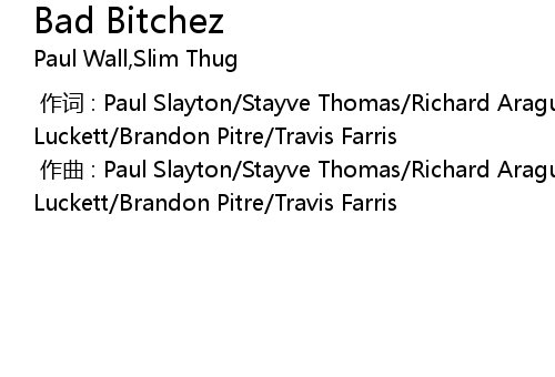 | [00:00.000] | 作曲 : Paul Slayton/Stayve Thomas/Richard Araguz/Gavin Luckett/Brandon Pitre/Travis Farris |