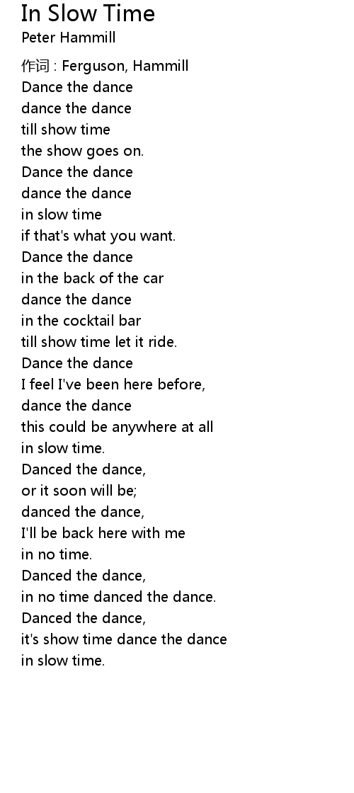 | 歌曲 | In Slow Time |