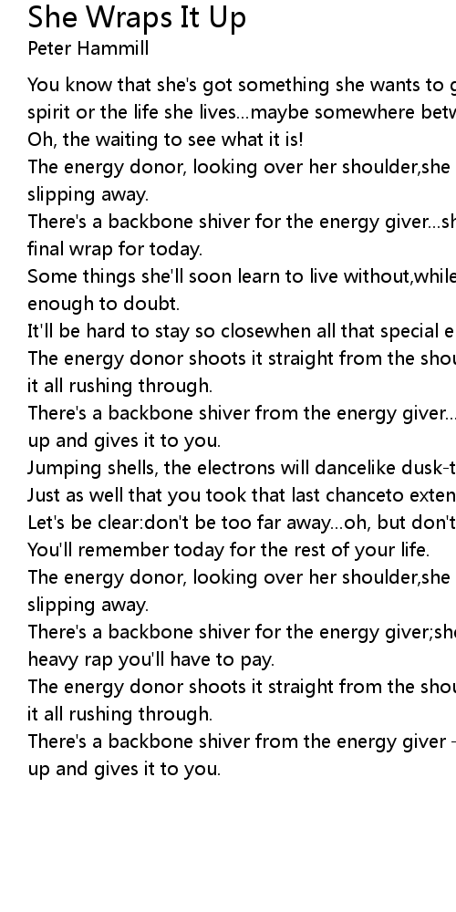 | There' s a backbone shiver from the energy giver she wraps it up, she wraps it up and gives it to you. |