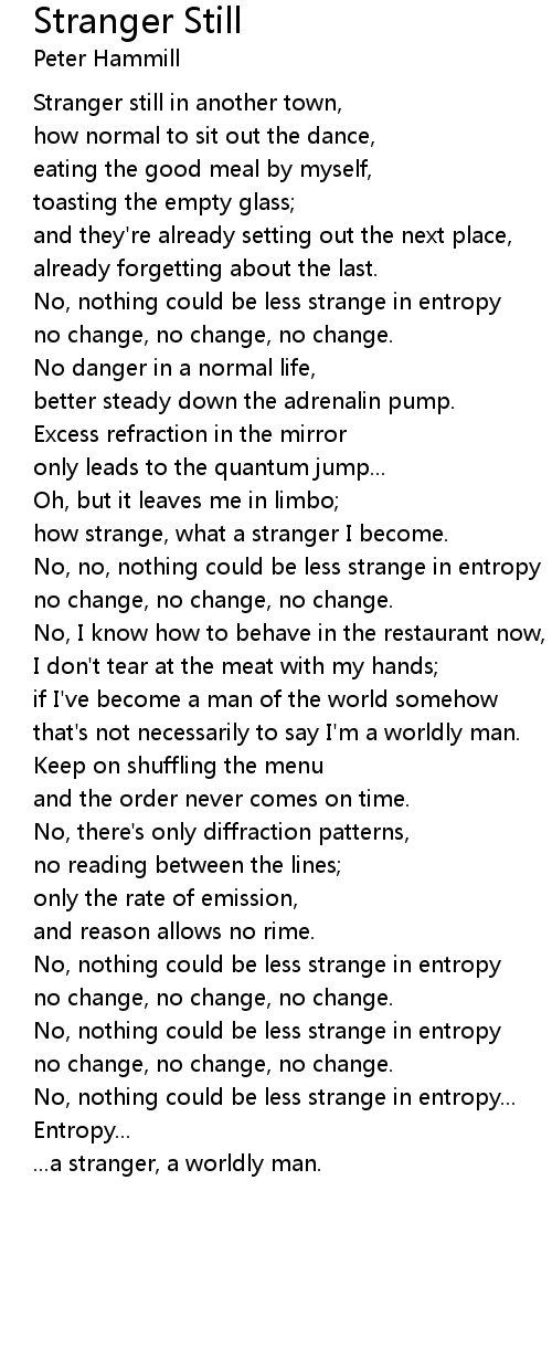 how strange, what a stranger I become. |