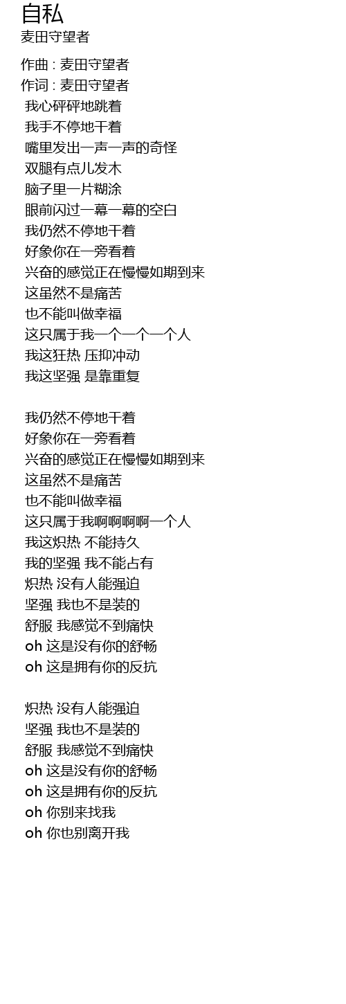 | 歌曲 | 自私 |