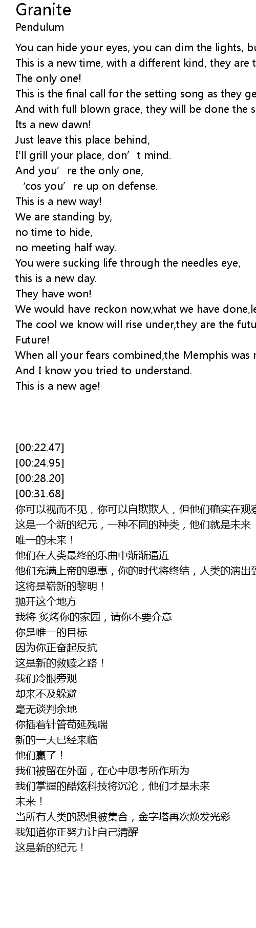 | [01:30.05] | 他们充满上帝的恩惠,你的时代将终结,人类的演出到此为止 |