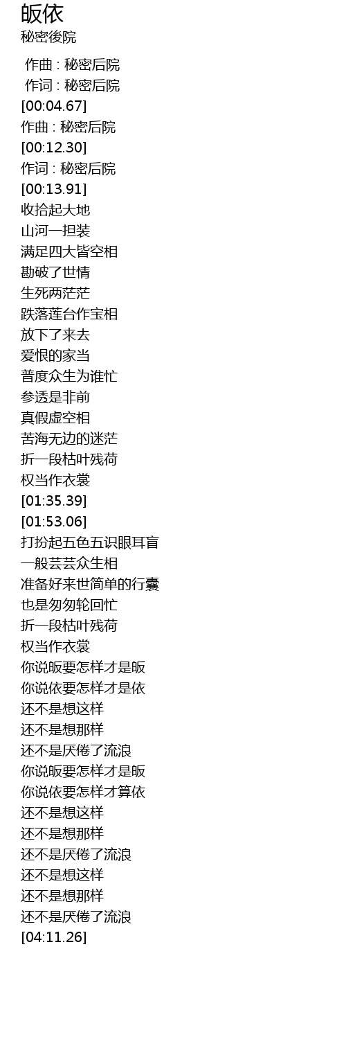 | [00:00.00] | 作曲 : 秘密后院 |