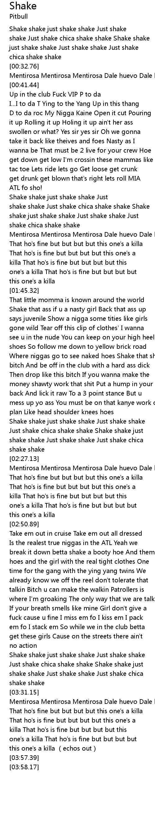 | [01:15.35] | shake shake Just shake chica shake shake Shake |