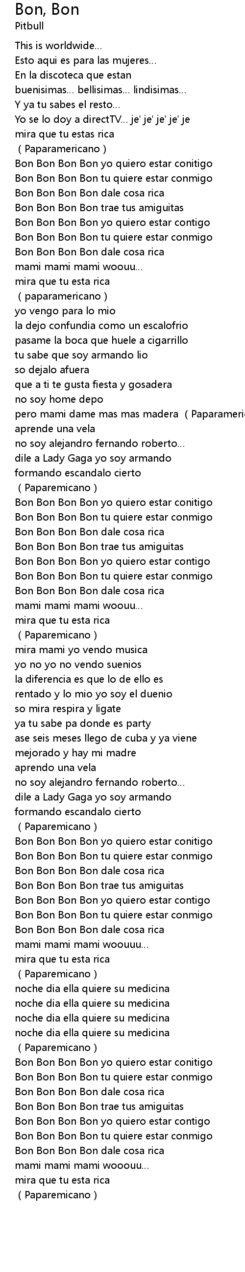| [01:15.84] | Bon Bon Bon Bon tu quiere estar conmigo |