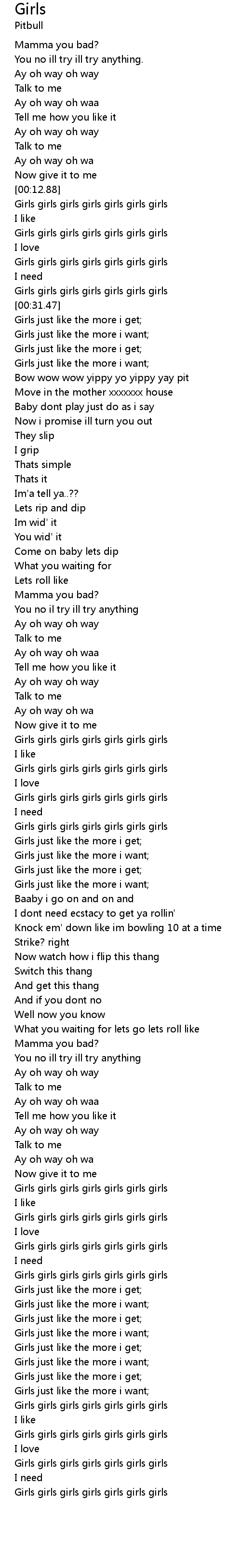 Girls just like the more i want; |