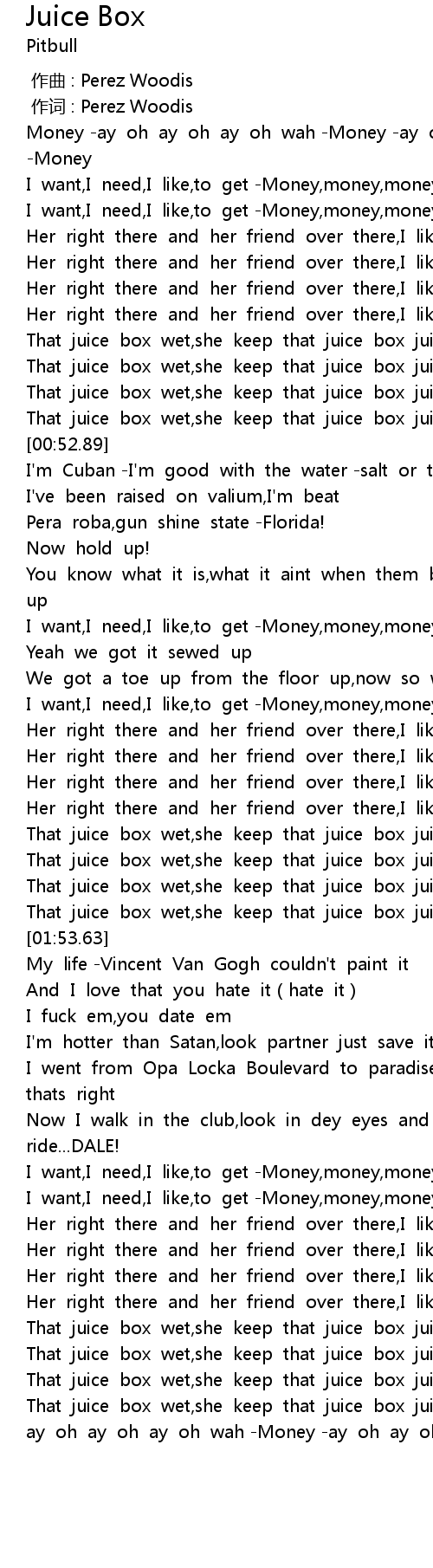 | [01:41.88] | That juice box wet, she keep that juice box juicy, I like |