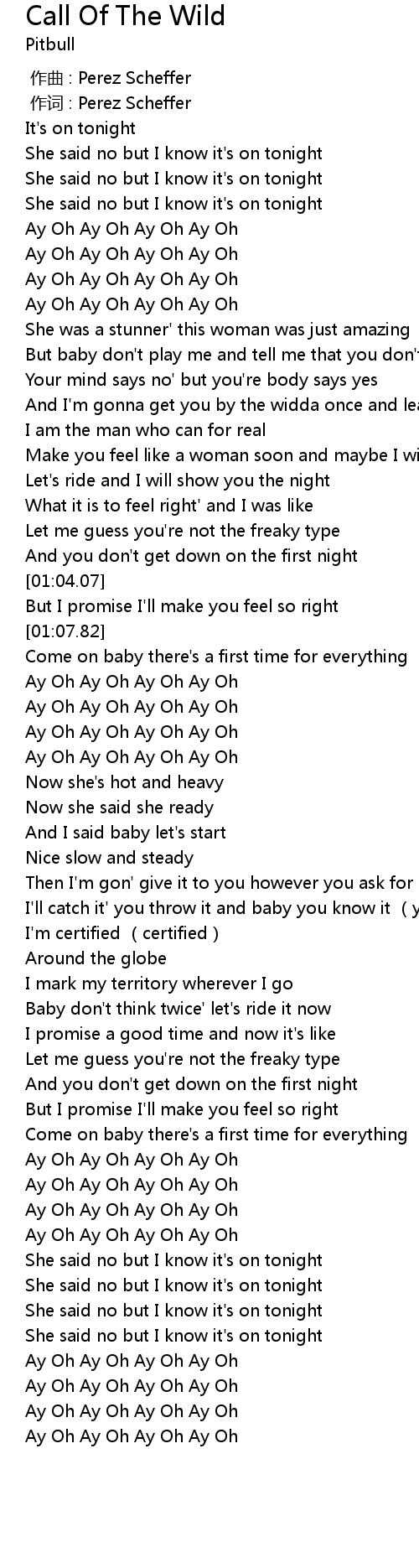 | [01:12.18] | Ay Oh Ay Oh Ay Oh Ay Oh |