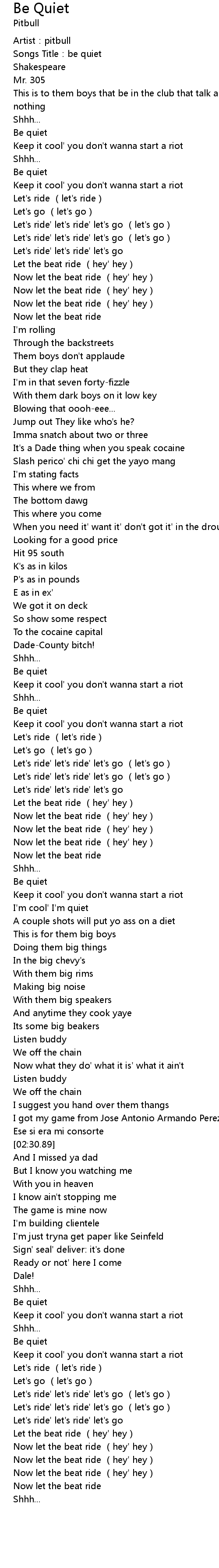 | [01:30.68] | Keep it cool' you don' t wanna start a riot |
