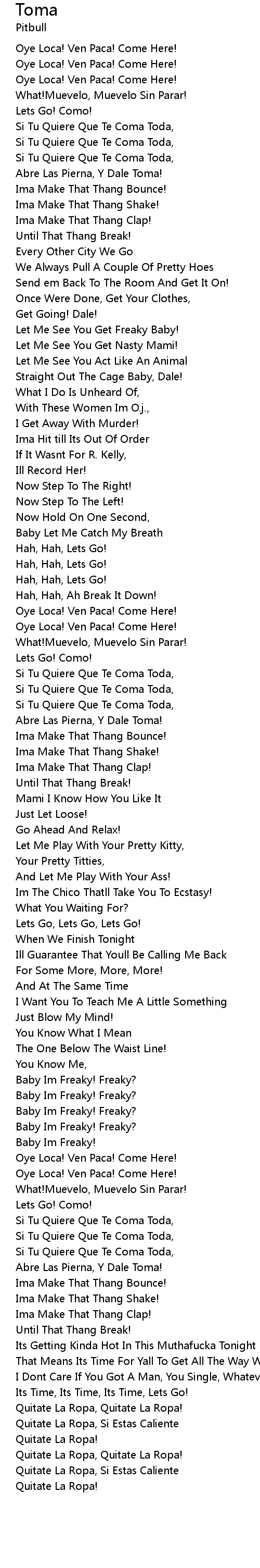 Si Tu Quiere Que Te Coma Toda, |