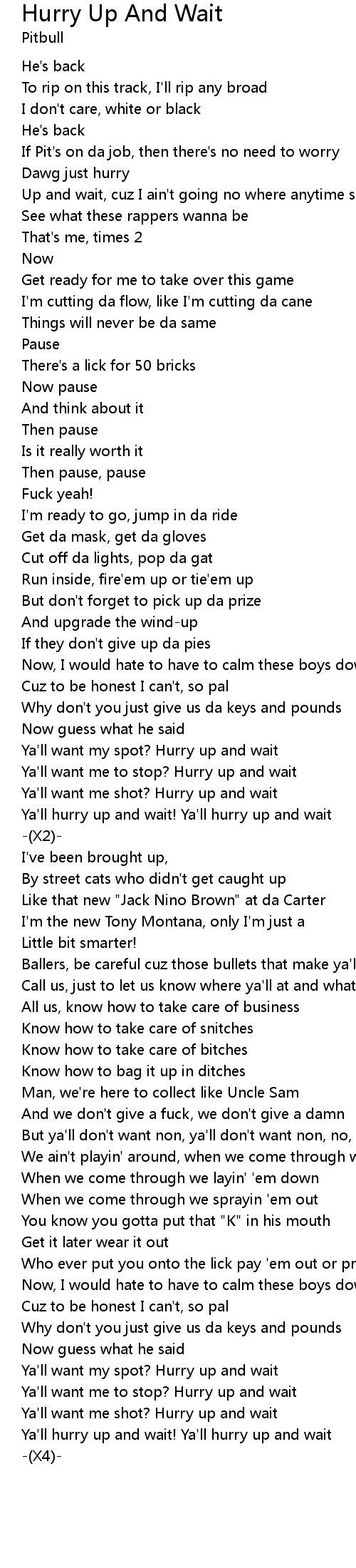 Ya'll hurry up and wait! Ya'll hurry up and wait |