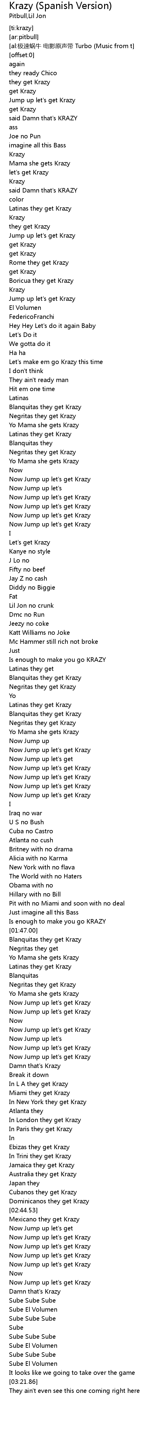 | [02:40.69] | Cubanos they get Krazy |