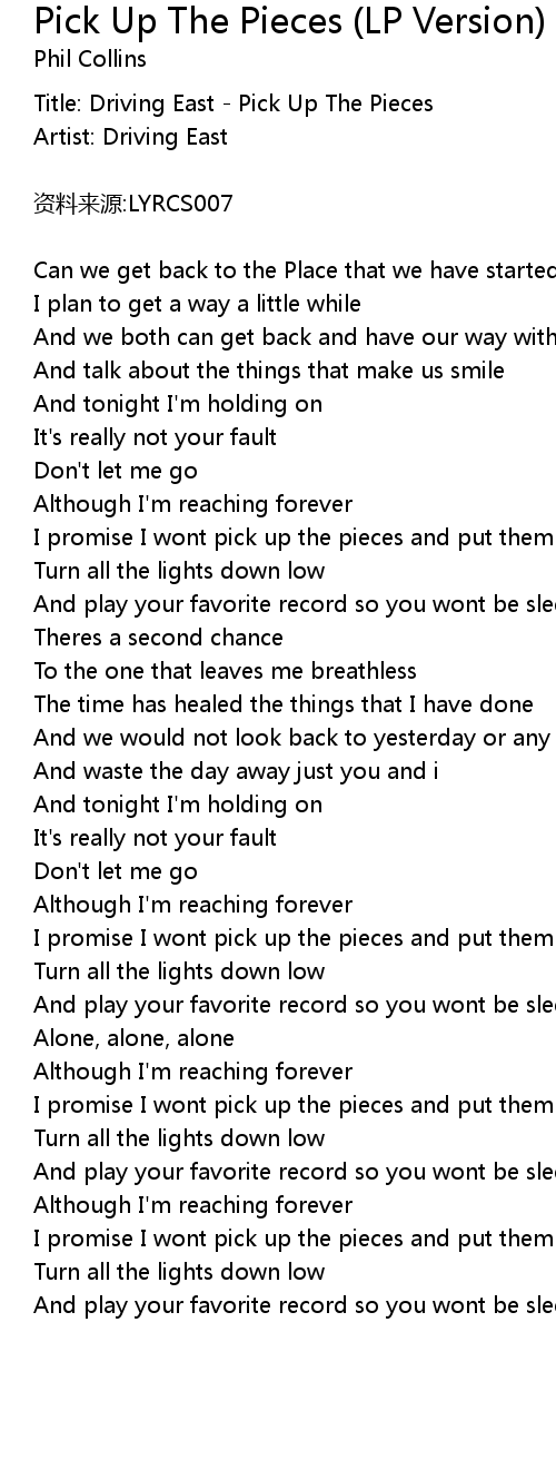 | 歌曲 | Pick Up The Pieces (LP Version) |