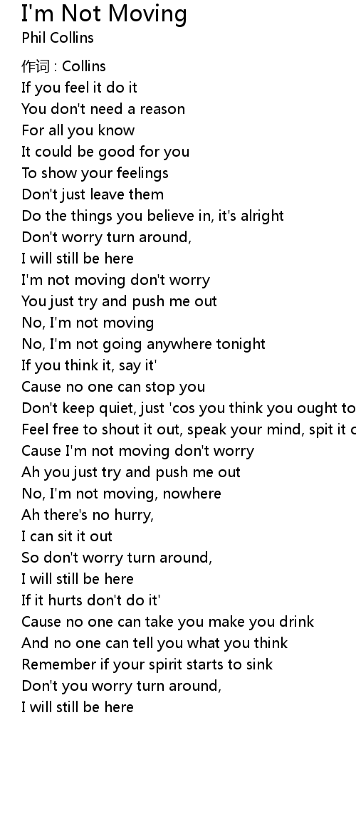 | Cause I' m not moving don' t worry | |
