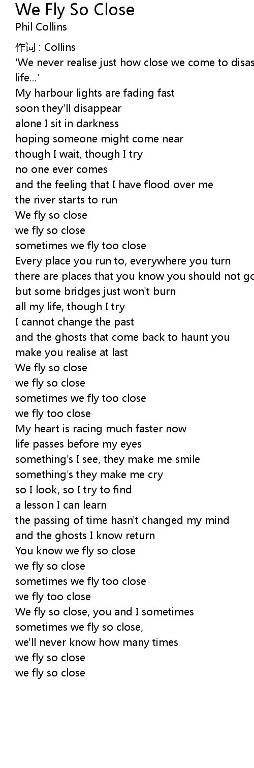 | 歌曲 | We Fly So Close |