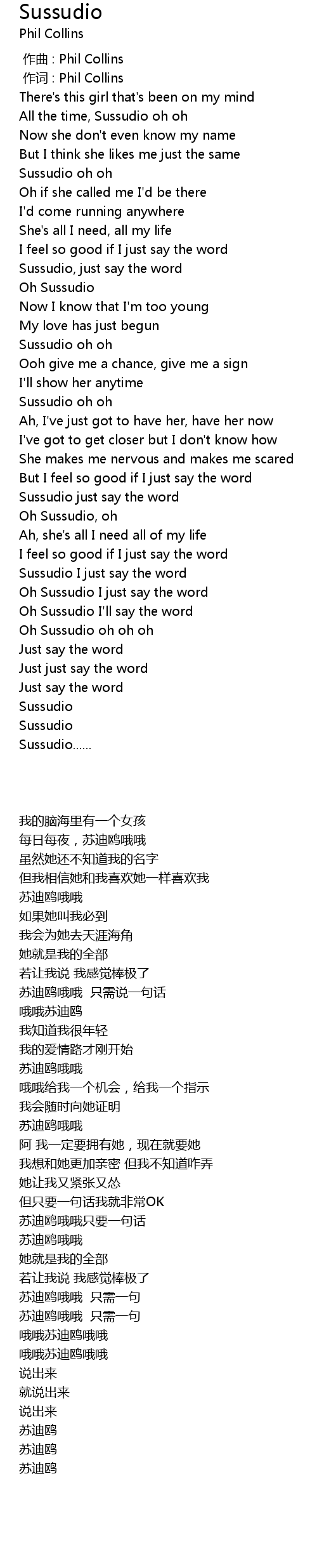 | [03:05.65] | Oh Sussudio I'll say the word |