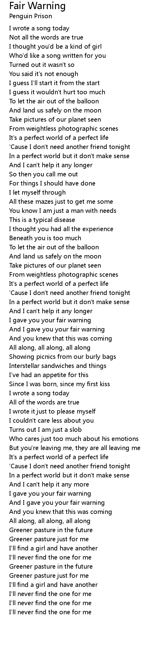 Fair Warning 歌词