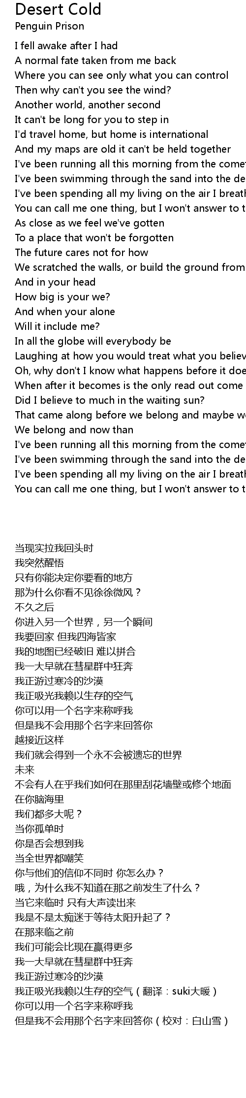 I've been swimming through the sand into the desert cold |
