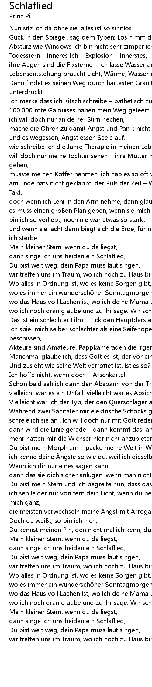 | Du bist mein Morphium packe meine Welt in Watte, | |