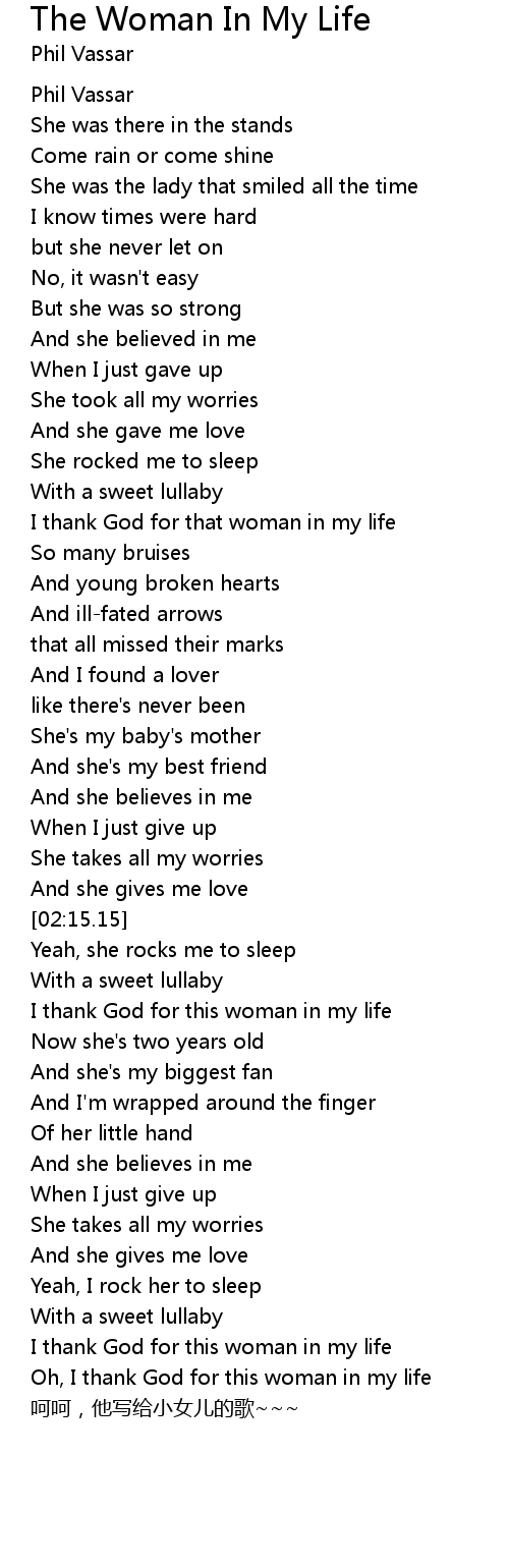 | [03:17.36] | Oh, I thank God for this woman in my life |