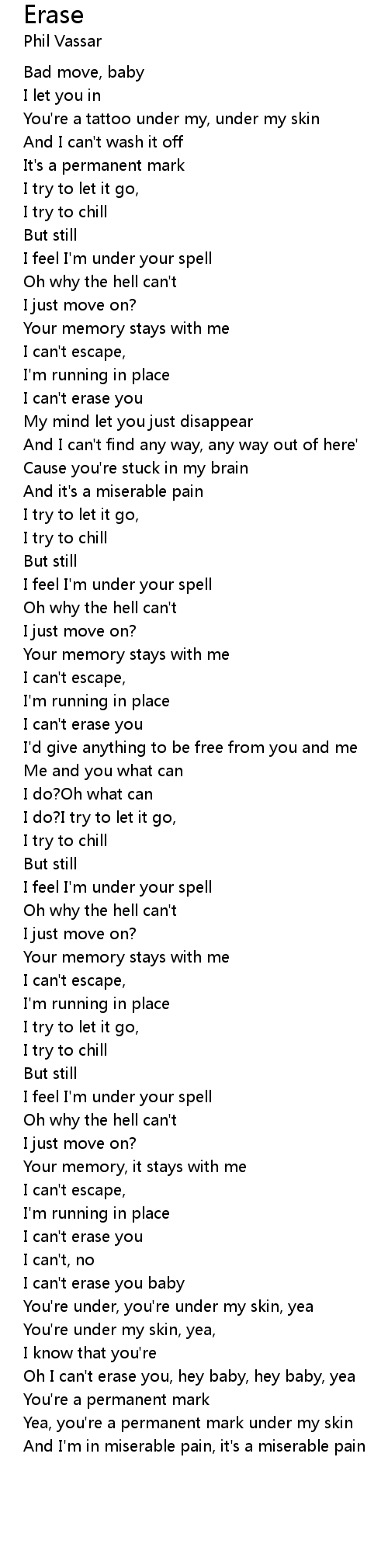Oh I can't erase you, hey baby, hey baby, yea |