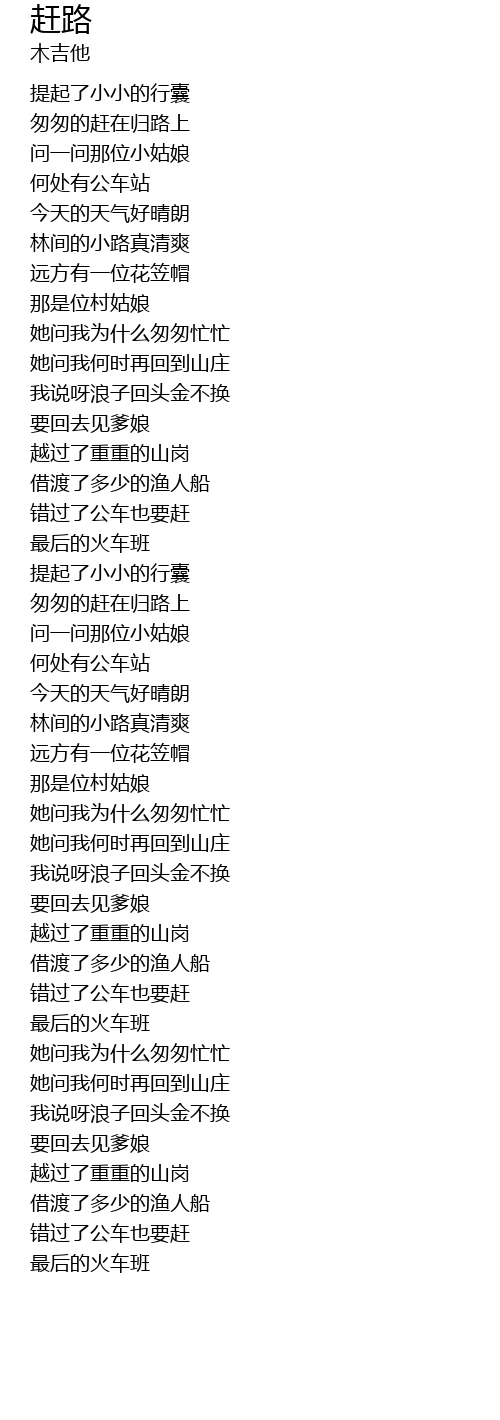 | 歌曲 | 赶路 |