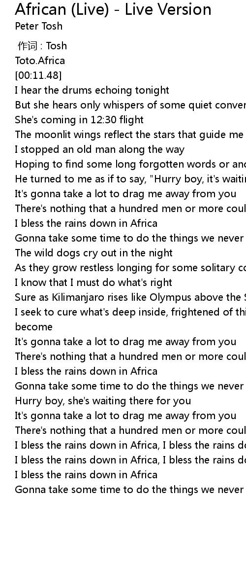 | [00:00.00] | Toto.Africa |