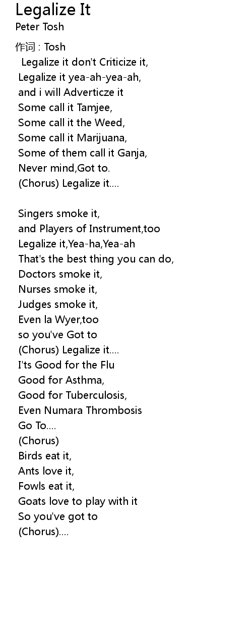 | Legalize it, Yeaha, Yeaah | |