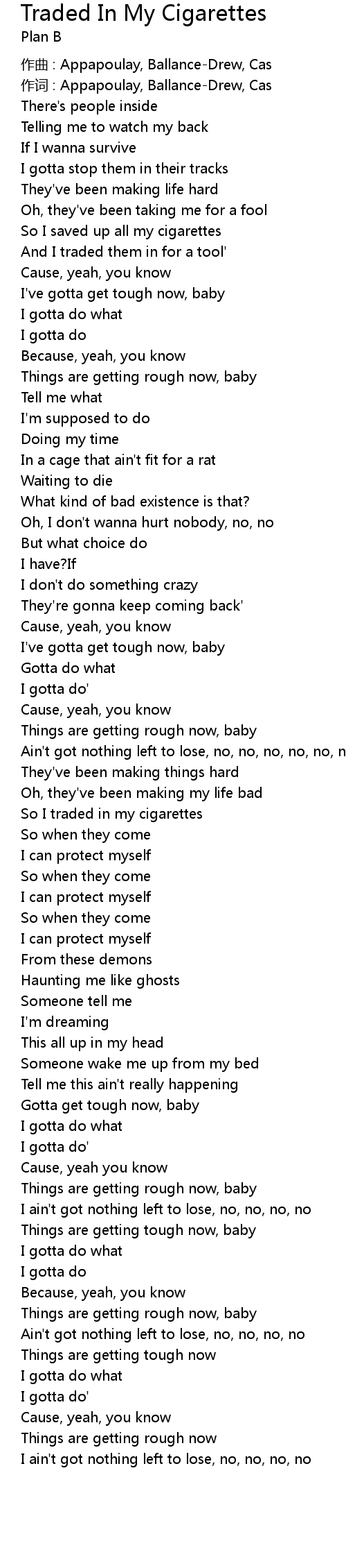 | 歌曲 | Traded In My Cigarettes |