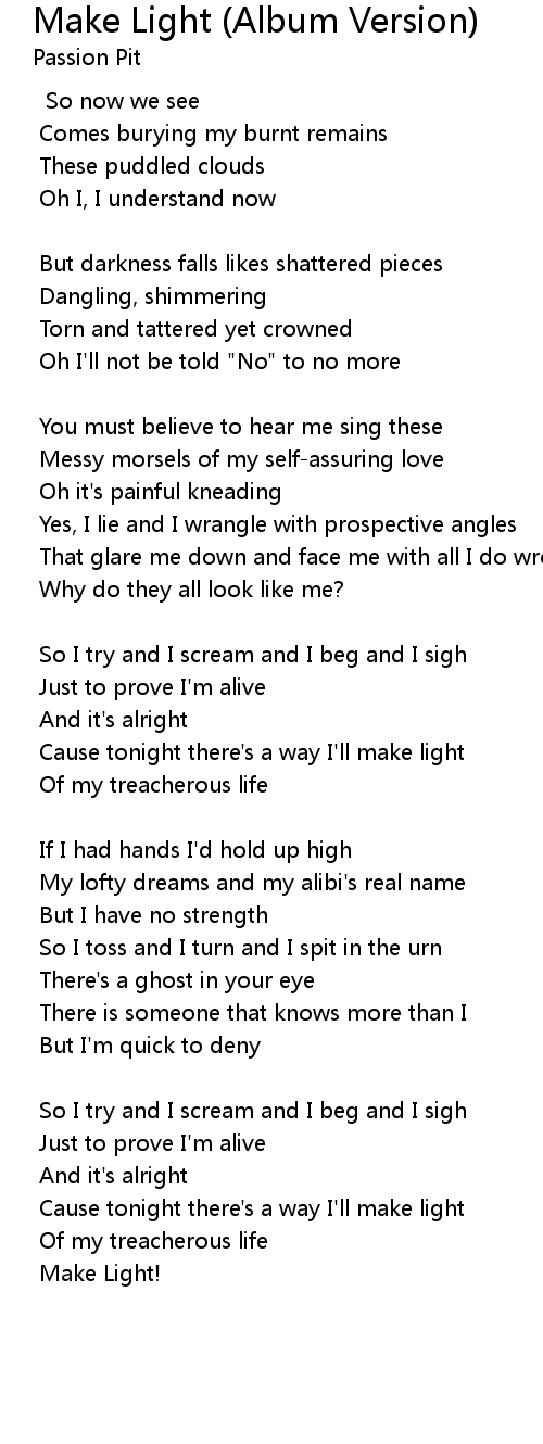 | Cause tonight there's a way I'll make light | |