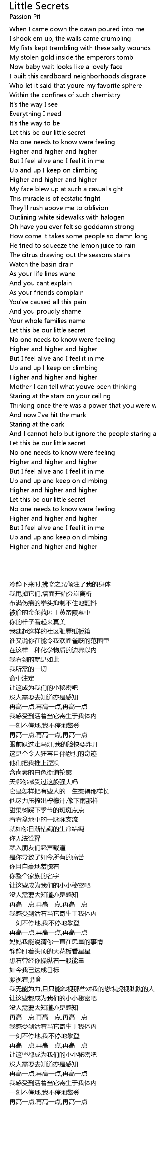 Up and up I keep on climbing |