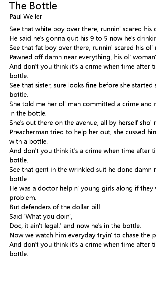 And don't you think it's a crime when time after time, after time livin' in the bottle. |