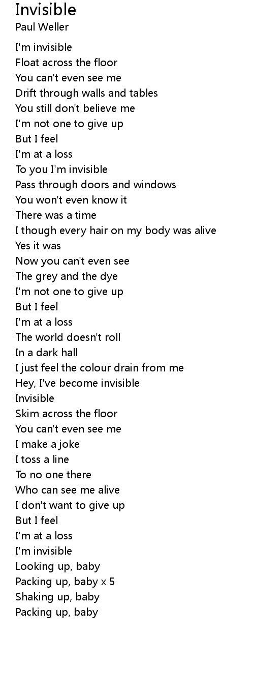 To you I'm invisible |