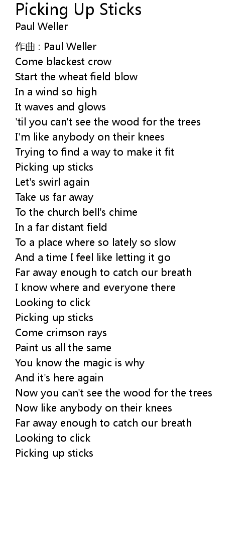 | 歌曲 | Picking Up Sticks |