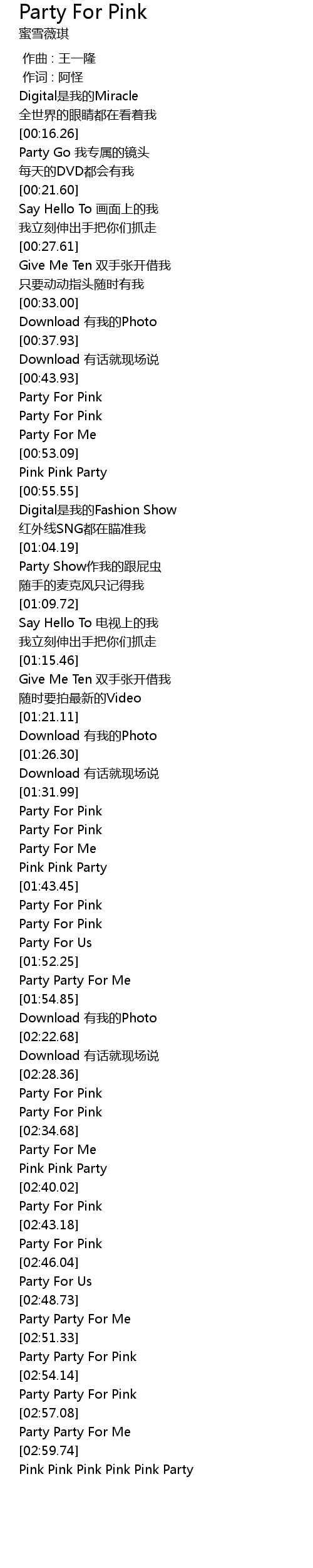 | [03:00.60] | Pink Pink Pink Pink Pink Party |
