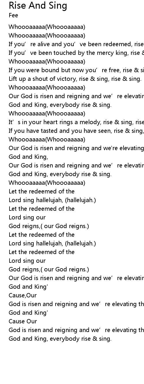 | If you' re alive and you' ve been redeemed, rise sing, rise sing. | |