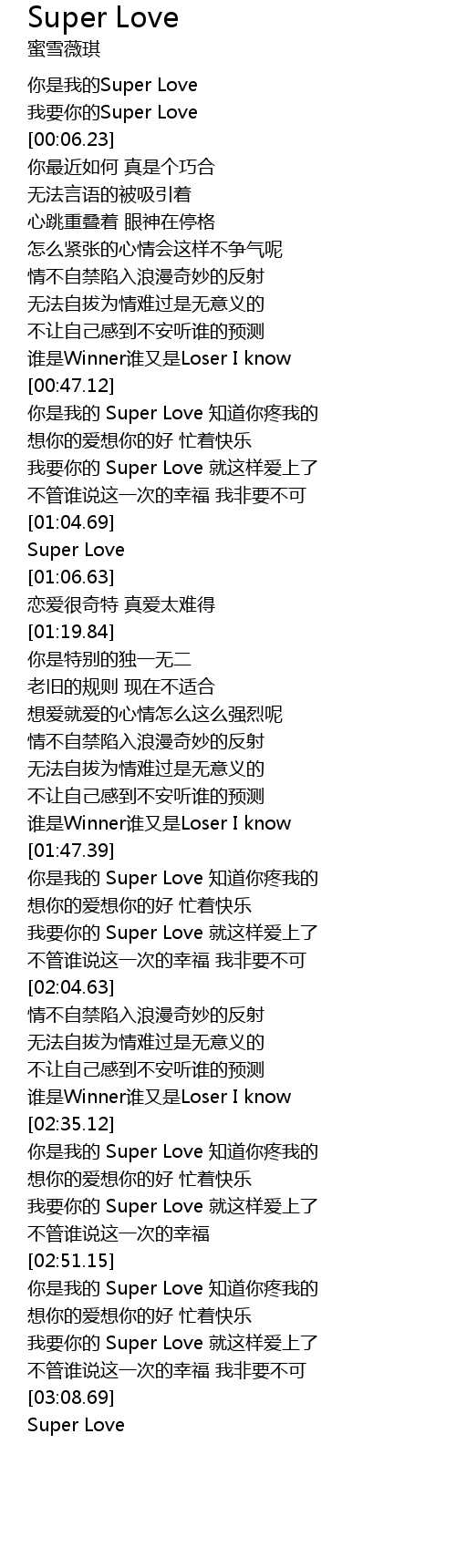 | [02:36.04] | 你是我的 Super Love 知道你疼我的 |