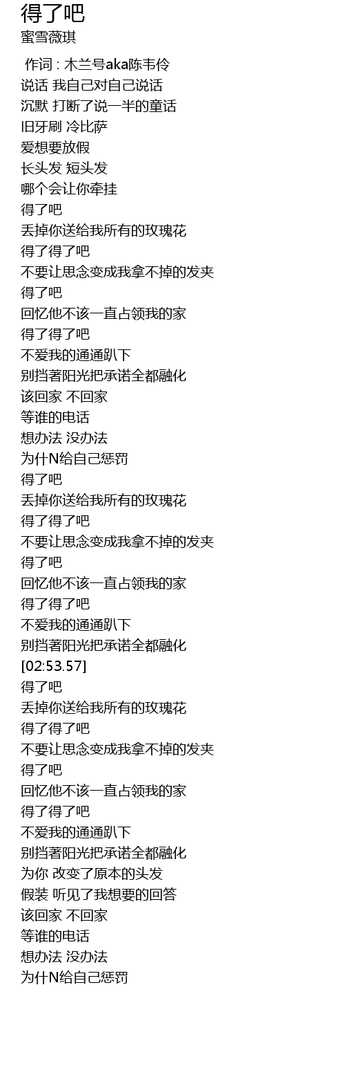 | [03:06.81] | 得了得了吧 |