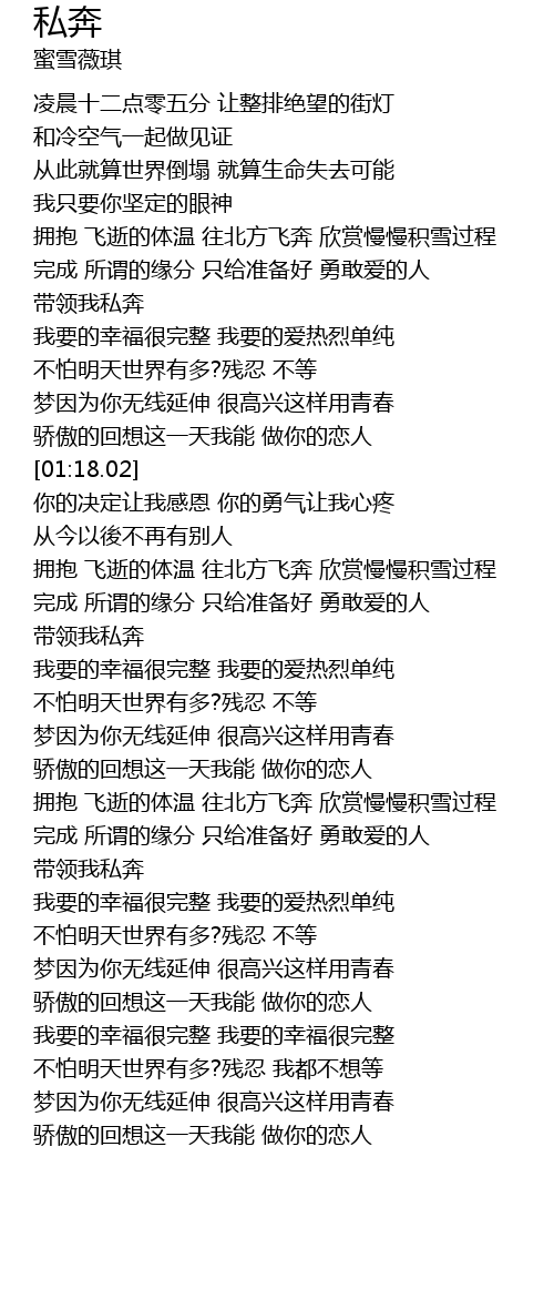 | [02:58.59] | 带领我私奔 |