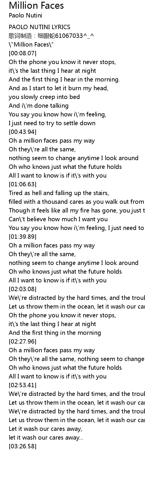 | [00:05.62] | " Million Faces" |